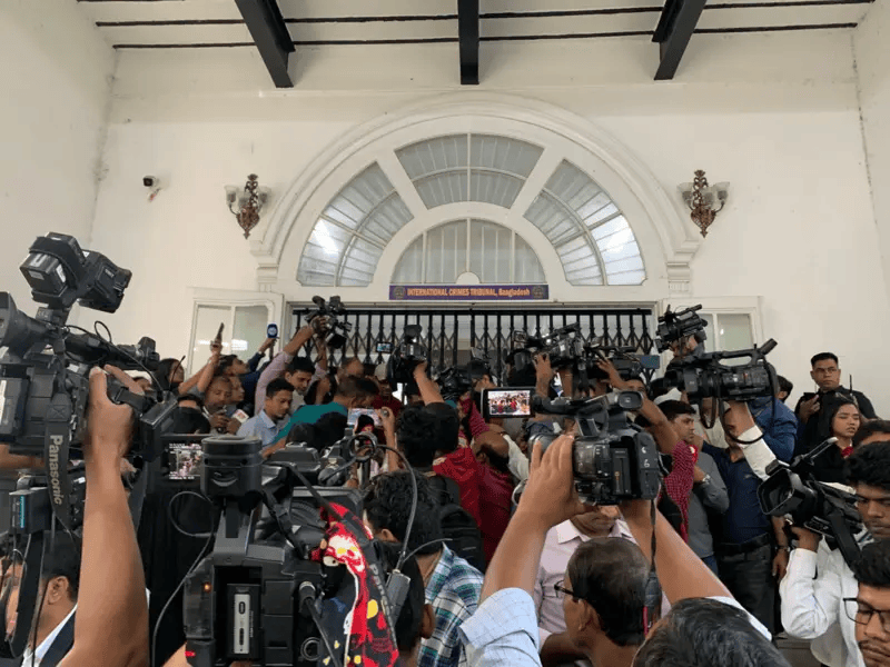 11月17日,达卡国际刑事法庭门口挤满了记者